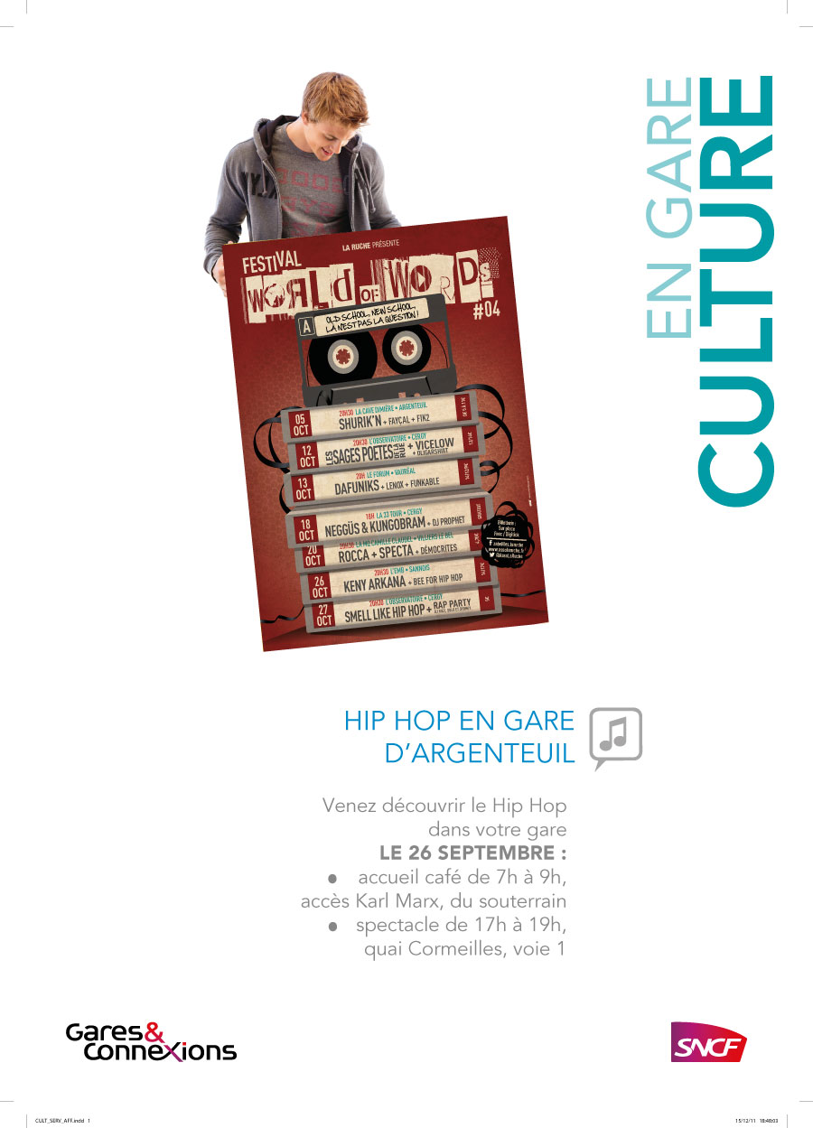 des lieux de vie, vous pourrez assister à des démonstrations de Hip Hop, le 26 septembre en gare d’Argenteuil,