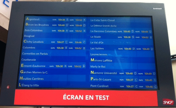 Si par hasard, vous évoquez les écrans en gare d’Asnières, sachez que les retours clients, et agents ont été intégrées puisqu’il y a ou y aura des adaptations.