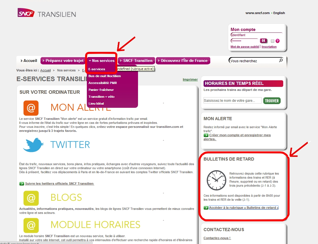 - Se rendre sur le site transilien.com. Rubrique « Nos services », puis « E-services »