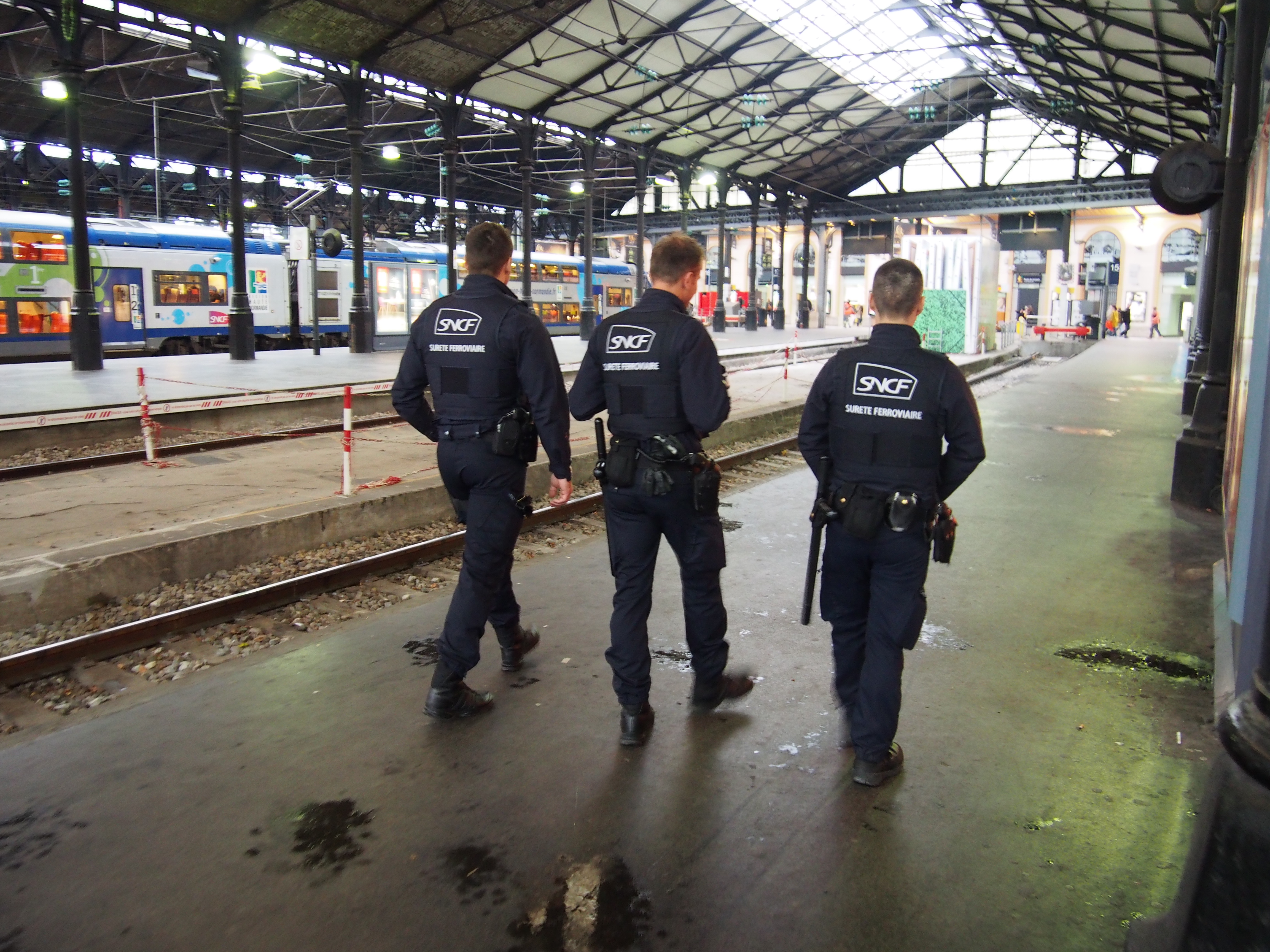 Il y a quelques jours, j’ai participé à une ronde du matin organisée par une équipe de la SUGE (Surveillance Générale, équipe de Sûreté Ferroviaire) en gare de Paris Saint-Lazare. J’ai donc rejoint l’équipe, composée de 3 agents. Nous avons alors patrouillé sur les trois étages du centre commercial, le quai transversal, le parvis de la gare et le long des quais.