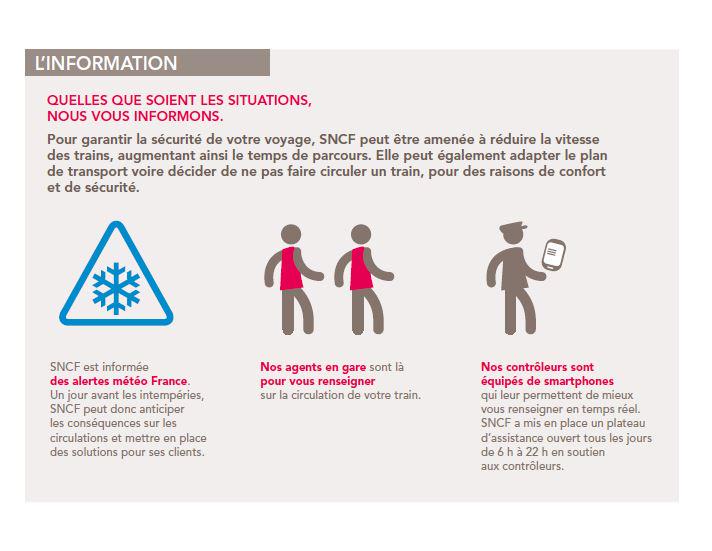 Avec l’enneigement des quais, l’accès des voyageurs est rendu difficile voire impossible par la neige et/ou le verglas… Les agents des gares sablent les quais et les accès au sein des emprises ferroviaires. Des annonces d’appel à la vigilance sont également diffusées.