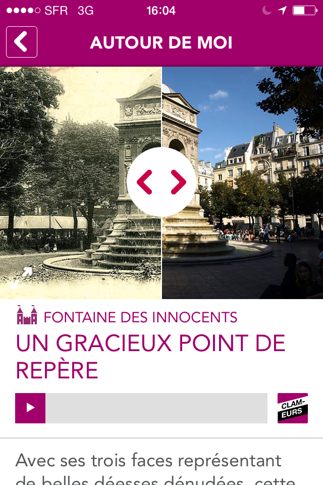 L’application vous offre également la possibilité de comparer certains monuments pour admirer l’évolution du site d’une époque à une autre. Ces bonus vous donnent accès à 30 photos comparatives d’hier à aujourd’hui et vous donne la possibilité de composer vous-même une image Avant/Après. Pour le moment, une dizaine de sites exceptionnels vous sont proposés pour créer votre photo originale en superposant les vues du passé et du présent.