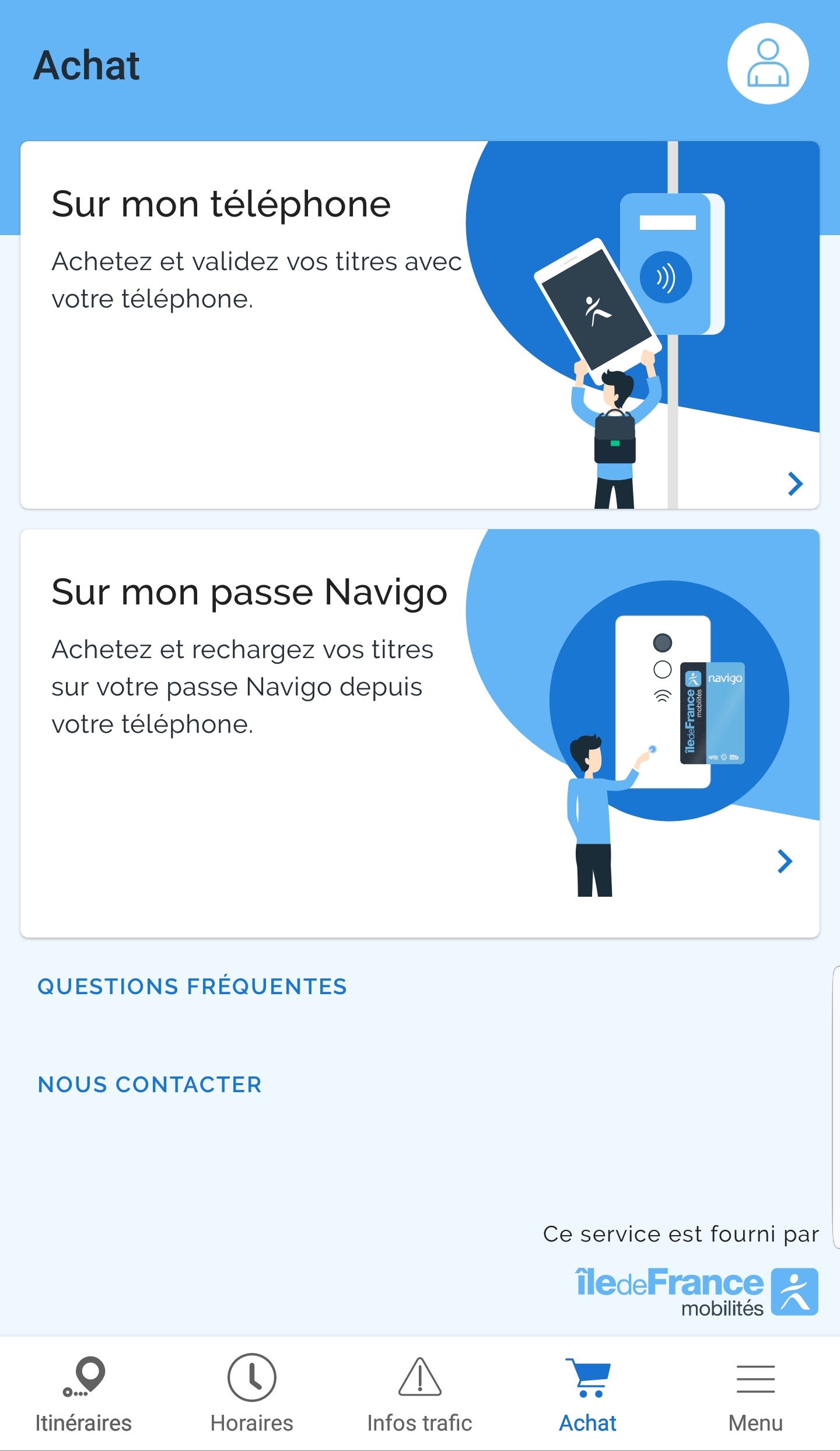 Pour cela, rendez-vous de nouveau dans l’onglet “Achat” de l’application Ile-de-France Mobilités. Vous avez cette fois 2 options :