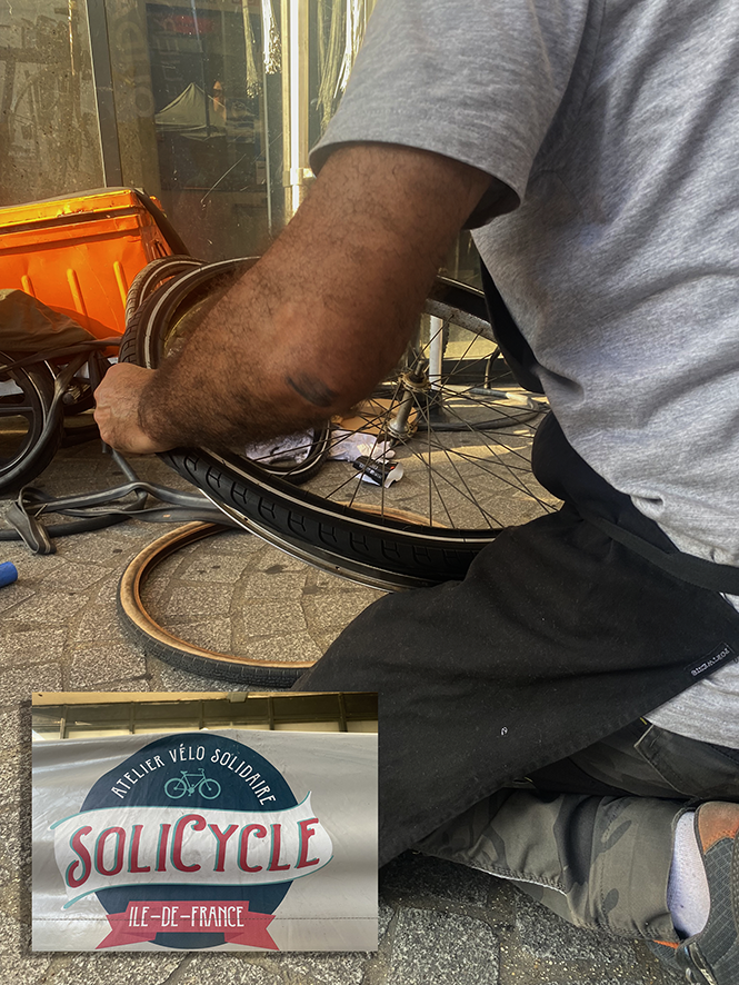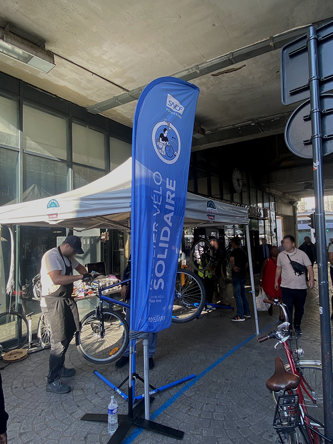 À la gare de Colombes, SoliCycle propose des ateliers vélo solidaires : réparations gratuites, conseils pratiques et convivialité autour du vélo.