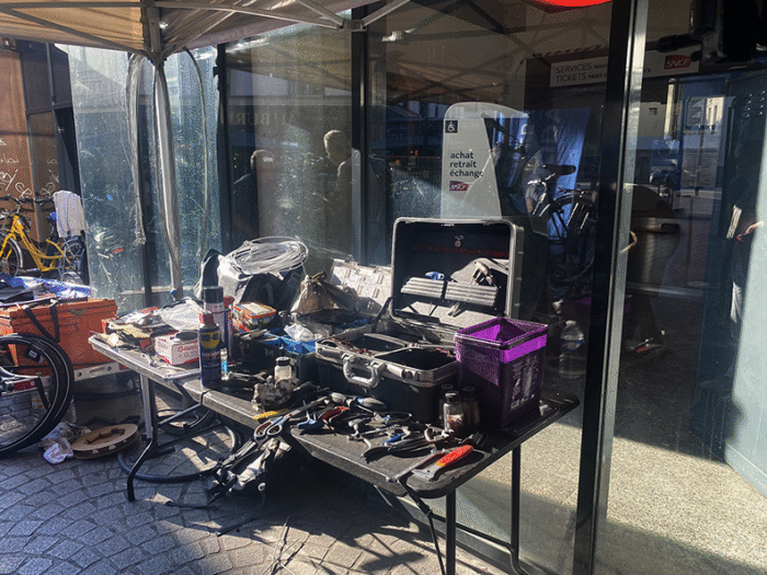 👉 Si vous passez par les stands lors de vos trajets, vous y trouverez bien plus qu’un simple coup de clé, mais un vrai moment d’échange et de solidarité autour du vélo.