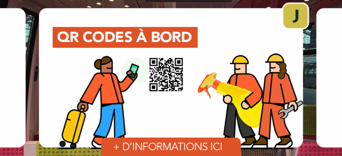 Difficile de le manquer ! Le QR Code, c’est ce petit carré noir et blanc collé à plusieurs endroits du train, accompagné du message : « Propreté, confort : un problème à signaler ? Scannez ce QR Code ! »