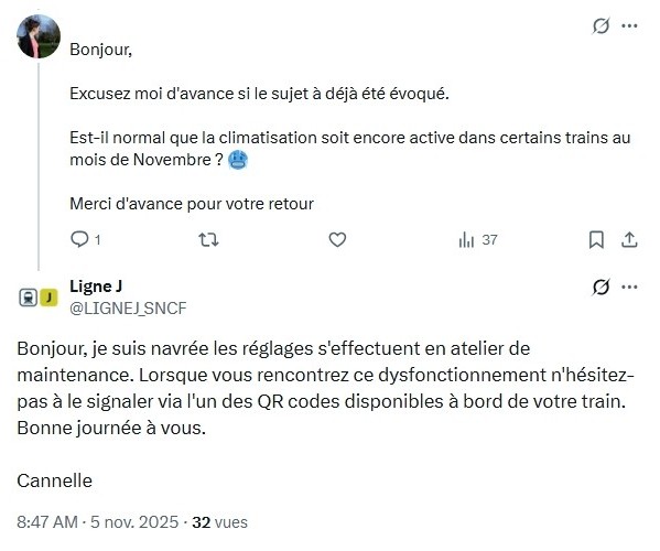 Les équipes du technicentre reçoivent l’information et planifient ensuite l’action nécessaire, que ce soit pour réparer un équipement ou effectuer un nettoyage. Selon la nature du problème, l’intervention peut être immédiate ou programmée dans les heures ou jours suivants. Si le souci est important, il arrive parfois que le train soit temporairement retiré de la circulation pour être traité correctement.
