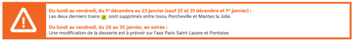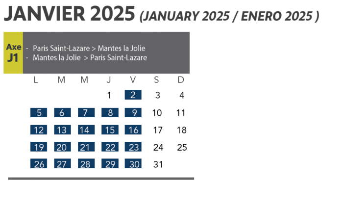 - J6 : Paris Saint-Lazare <> Mantes la Jolie via Conflans Sainte-Honorine / Pontoise/ Gisors.