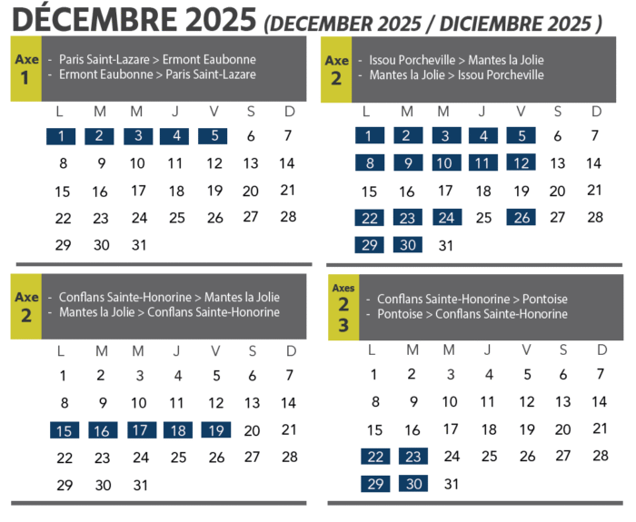 Voici les calendriers des travaux pour les mois de décembre 2025 et de janviers 2026, classés par axe afin que vous puissiez trouver rapidement toutes les informations nécessaires.