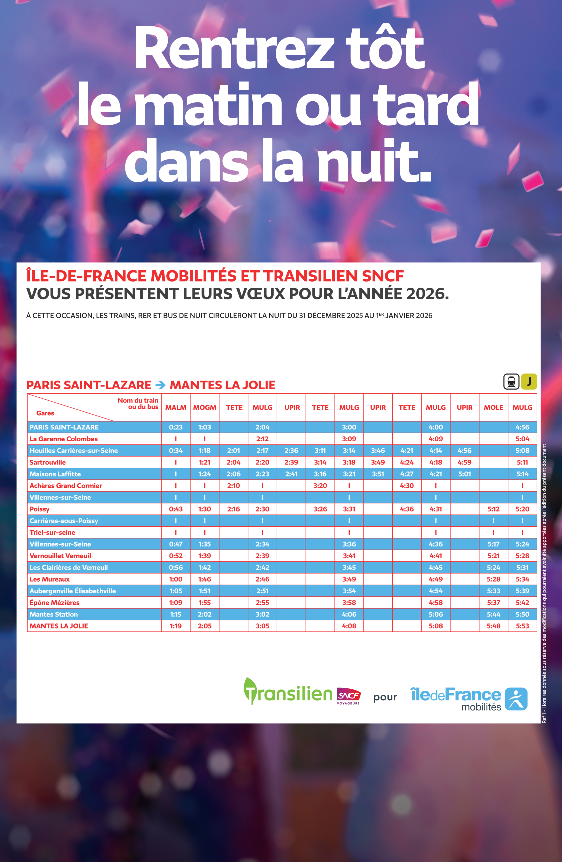Avec ce dispositif exceptionnel, Île-de-France Mobilités réaffirme son engagement : permettre à toutes et tous de profiter pleinement des grands moments de fête, tout en favorisant des déplacements responsables et sécurisés.