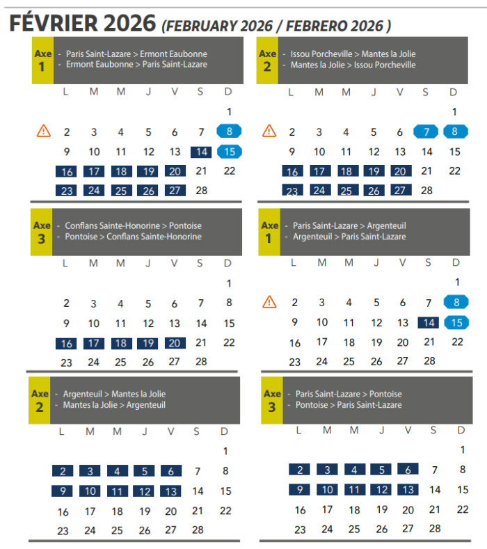 - J6 : Axe Paris Saint-Lazare <> Pontoise / Boissy l’Aillerie / Gisors.
