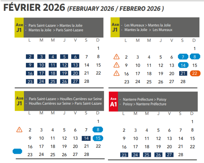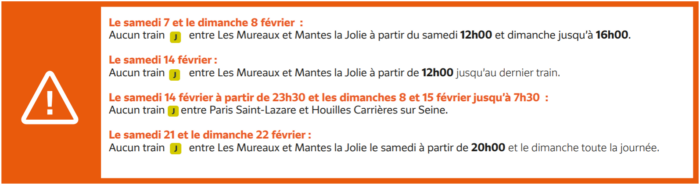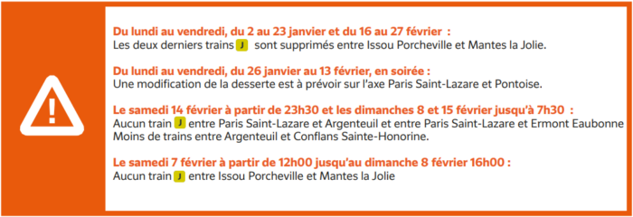 - J6 : Axe Paris Saint-Lazare <> Mantes la Jolie via Conflans-Sainte-Honorine,