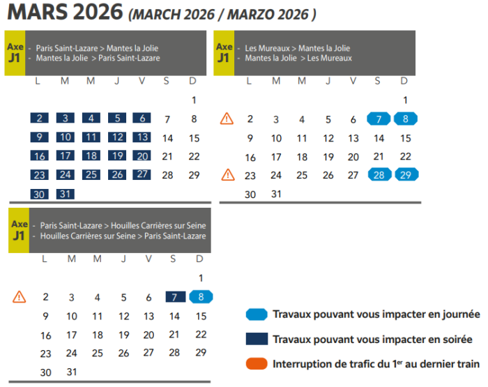 Voici les calendriers des travaux pour les mois de février et de mars 2026, classés par axe afin que vous puissiez trouver rapidement toutes les informations nécessaires.