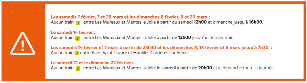 - J6 : Axe Paris Saint-Lazare <> Mantes la Jolie via Conflans-Sainte-Honorine,